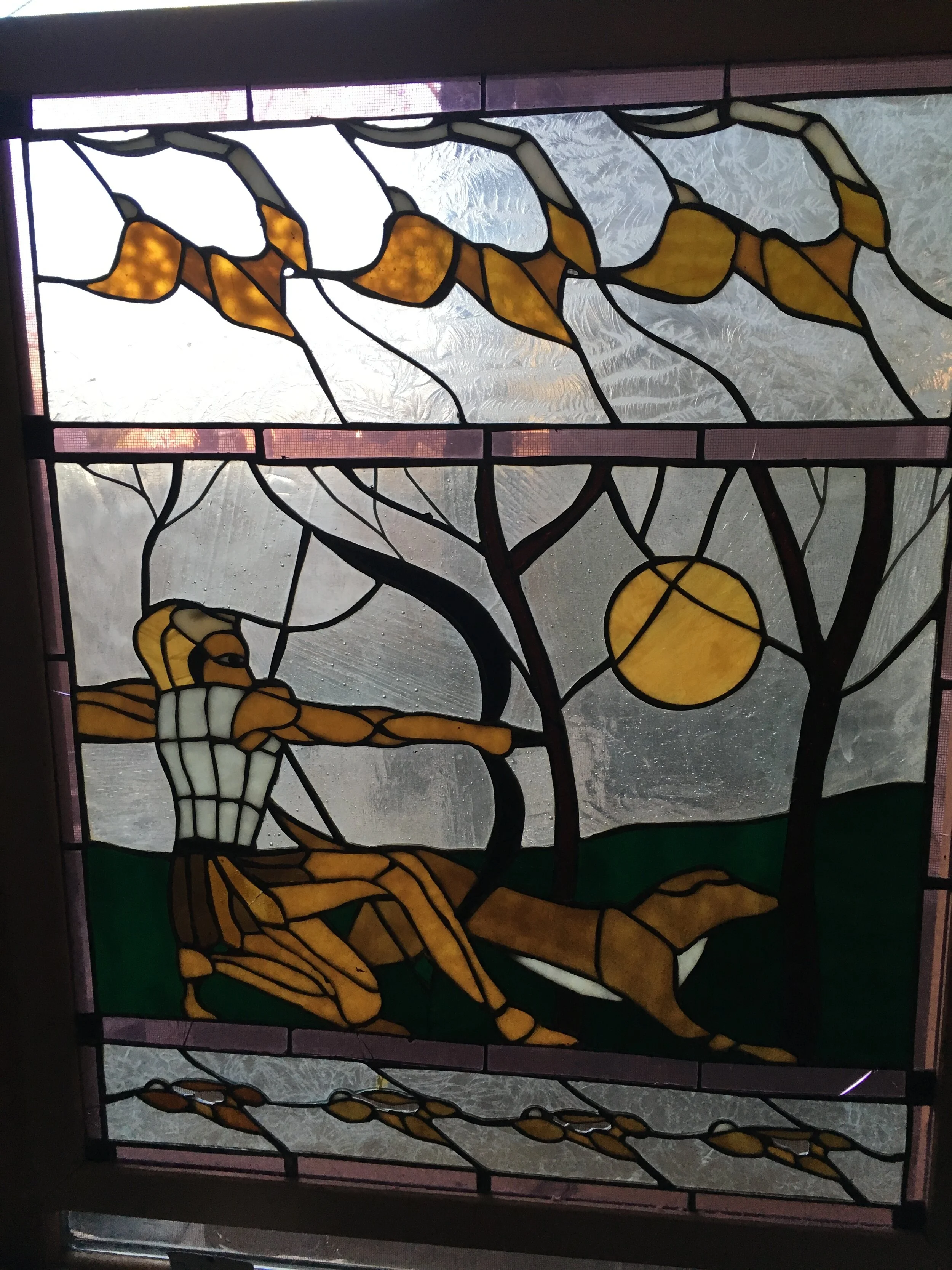 An original stained glass project depicting Greek images from my college course Ancient Art and Architecture